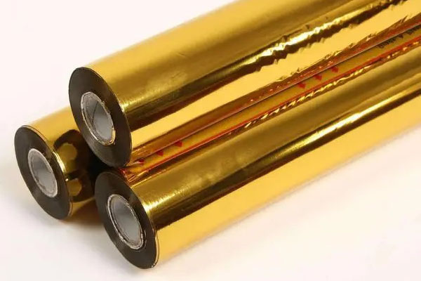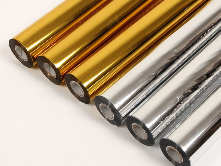 燙金紙在我國北方俗稱電化鋁,它是由在聚酯薄膜(PET)和在其表面涂布的多層化學涂層組成。聚酯膜通常厚度是12微米,其中有些涂層的作用是產(chǎn)生裝飾效果,而加外有些涂層用于控制燙金紙的性能,不同的涂層適用于不同的基材。鋁層的作用是為了產(chǎn)生反光效果,是鋁絲經(jīng)高溫融化升華后在超低真空條件下凝結到燙金紙上形成的。